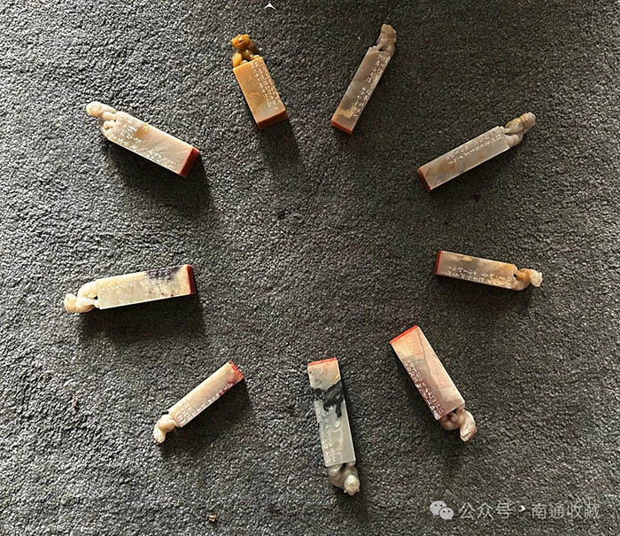 王勛不僅冶印,對石料的質地和印章的鑒賞也有很深的造詣。我曾收藏一百多方印章,均以為是老章,甚至還有齊白石印章。當初收藏這方章時,心中曾竊喜,以為撿到大漏了。王勛老師把這些印章一一上手,認為章不老,但有些料是老坑章料,質地不錯。