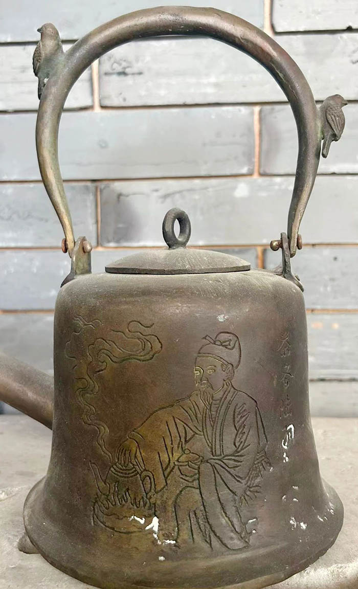 壺之材質繁多,金、銀、錫、銅、玉、紫砂、瓷各具風韻。市井坊間,尤以老錫壺、銅壺、紫砂壺與瓷壺最為常見。我收藏了一把老銅長嘴壺,此乃舊時茶攤叫賣所用,壺嘴修長,銅色溫潤,依稀可見當年市井煙火氣。