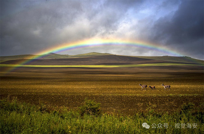 雨后的草原出現彩虹    崔世榮攝